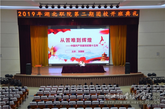 10月21日晚,学校2019年第二期团校开班典礼在文昌大礼堂顺利举行。学校党委书记张国雄、副校长杨立明出席开班典礼,党委学工部、团委相关负责人、各二级教学院副书记、全体专兼职辅导员、班主任,校、院、班三级团学干部等参加了开班典礼。典礼由校团委书记谭之平主持。