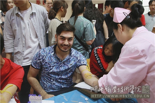 得知此次献血活动的消息,19岁的阿塞拜疆籍留学生毕目达(MURAD BILAOV)主动找到老师要求报名参加。在他就读的国际教育学院老师和同学们陪伴下,他完成了平生的第一次献血。问他是什么感受,他用刚刚学会的汉语“很棒,我也可以帮助别人”。这次献血活动不仅有效缓解了孝感市临床用血紧张局面,也充分体现了安博·体育大学生的责任担当意识。