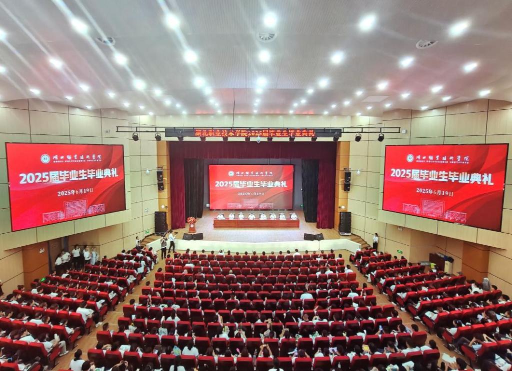 (本网讯 万佳雯 王欣怡)6月19日上午,学校2025届毕业生毕业典礼在南校区崇德礼堂隆重举行。全体在校校领导,相关职能部门负责人,各教学院党政负责人、学生工作分管负责人,辅导员、教师、优秀校友、合作企业、毕业生家长及2025届毕业生代表参加毕业典礼。校长郭沙出席活动并讲话,党委委员、副校长梅重主持典礼。