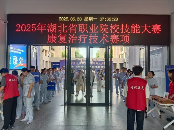 (本网讯 陈文培 曾欢) 6月30日,2025年“中银杯”湖北省职业院校技能大赛高职组康复治疗技术赛项在我校开幕。本次大赛吸引了省内16所高职院校150余名师生同台竞技。