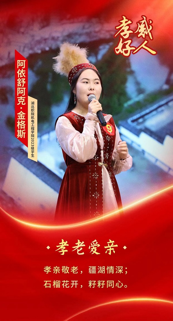 (本网讯 陈灏 徐佳辉)7月16日,2025年“孝感好人”评选结果发布,湖北职院荆楚石榴红志愿服务队副主席阿依舒阿克获评“孝感好人”。组委会给予阿依舒阿克的颁奖词是:孝铸共同体,中华一家亲,孝亲敬老、疆湖情深,石榴花开、籽籽同心。