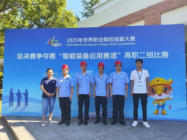 (本网讯 刘欣)8月24日至26日,2025年世界职业院校技能大赛总决赛高职组智能装备应用赛道争夺赛在浙江职业技术大学举行,来自全国的两百多支代表队同台竞技。经过三天激烈角逐,由我校机电工程学院教师黄学先、刘欣指导的钱富豪、田鑫烁、段进城、李双语等学生团队,凭借精湛的专业技能和全面的综合素质,荣获银奖。