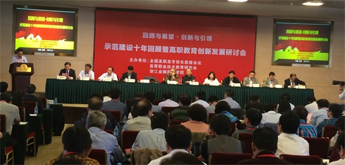 11月7日-8日,由全国高职高专校长联席会议、中国高等职业技术教育研究会及浙江金融职业学院联合主办的“示范建设十年回顾暨高职教育创新发展研讨会”在杭州召开。教育部职成司副巡视员葛维威、教育部职成司高职高专处处长林宇、国家教育咨询委员会委员黄达人、中国高教学会产学研合作教育协会会长朱传礼、中国高等教育学会会长瞿振元、国家示范性高职院校建设工作协作委员会会长李进、全国高职高专校长联席会主席董刚等专家莅会指导。学校校长朱虹应邀参加了会议。