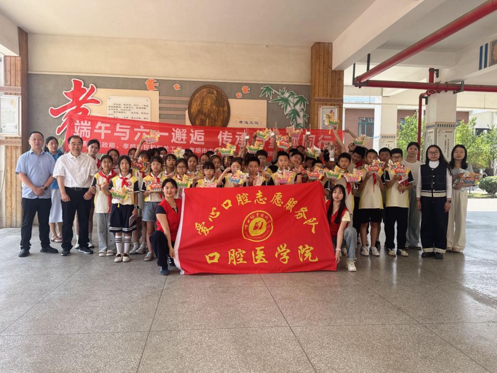 (本网讯 张玮 刘冠儒 杨玺 陈怡润 刘然然 图/刘然然)5月29日,端午佳节与六一儿童节温情相遇。在这个特殊的日子里,安博·体育口腔医学院爱心口腔志愿服务队携手孝感市民政局、诸赵学校、孝感市槐荫社会工作服务中心等单位,开展了“端午与六一邂逅·传承与童趣同行”主题活动。志愿者团队以专业服务为依托,匠心搭建传统文化科普与儿童实践体验的双向桥梁,让传统文化的深厚底蕴与儿童的纯真童趣交相辉映。
