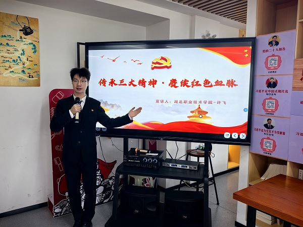 许飞说,这得益于6月26日的湖北省弘扬三大精神巡回宣讲活动和学校党建与思政工作的部署。6月26日下午,湖北省弘扬三大精神巡回宣讲活动走进孝感,在我校精彩开讲,我在聆听宣讲后深受启发,在互动环节中,我就“大学生如何坚定理想信念走好人生路”提问,丁银河教授从思政课建设、个人理论修养、社会实践路径等维度精彩解答,让我坚定了“把三大精神宣讲从课堂延伸到实践”的想法。