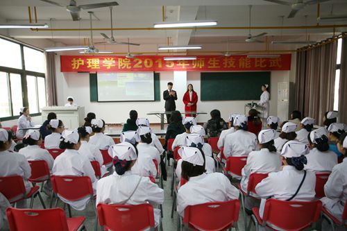 为提高学生技能比武参与面,同时为明年湖北省护理技能大赛、全国职业院校技能大赛选拔参赛苗子,本次学生技能比武分为两个阶段进行。第一阶段是班级选拔赛,通过班级选拔赛挑选1名选手参加学院比赛。第二阶段,学院总决赛,产生护理学院“学生专业技能比武十佳”。
