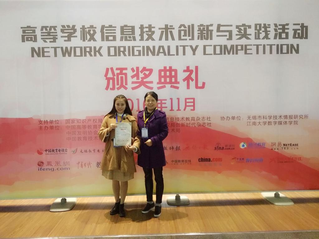 近日,全国“高等学校信息技术创新实践活动”决赛“未来教师”教学技能评比赛项在江苏无锡圆满落下帷幕。我校艺术与传媒学院2014级学前教育专业学生张雅萍在2016年湖北省大学生信息技术创新大赛中荣获一等奖,代表湖北省参加了全国比赛,由指导教师周天娇指导的作品“绘心 绘新”荣获全国二等奖。